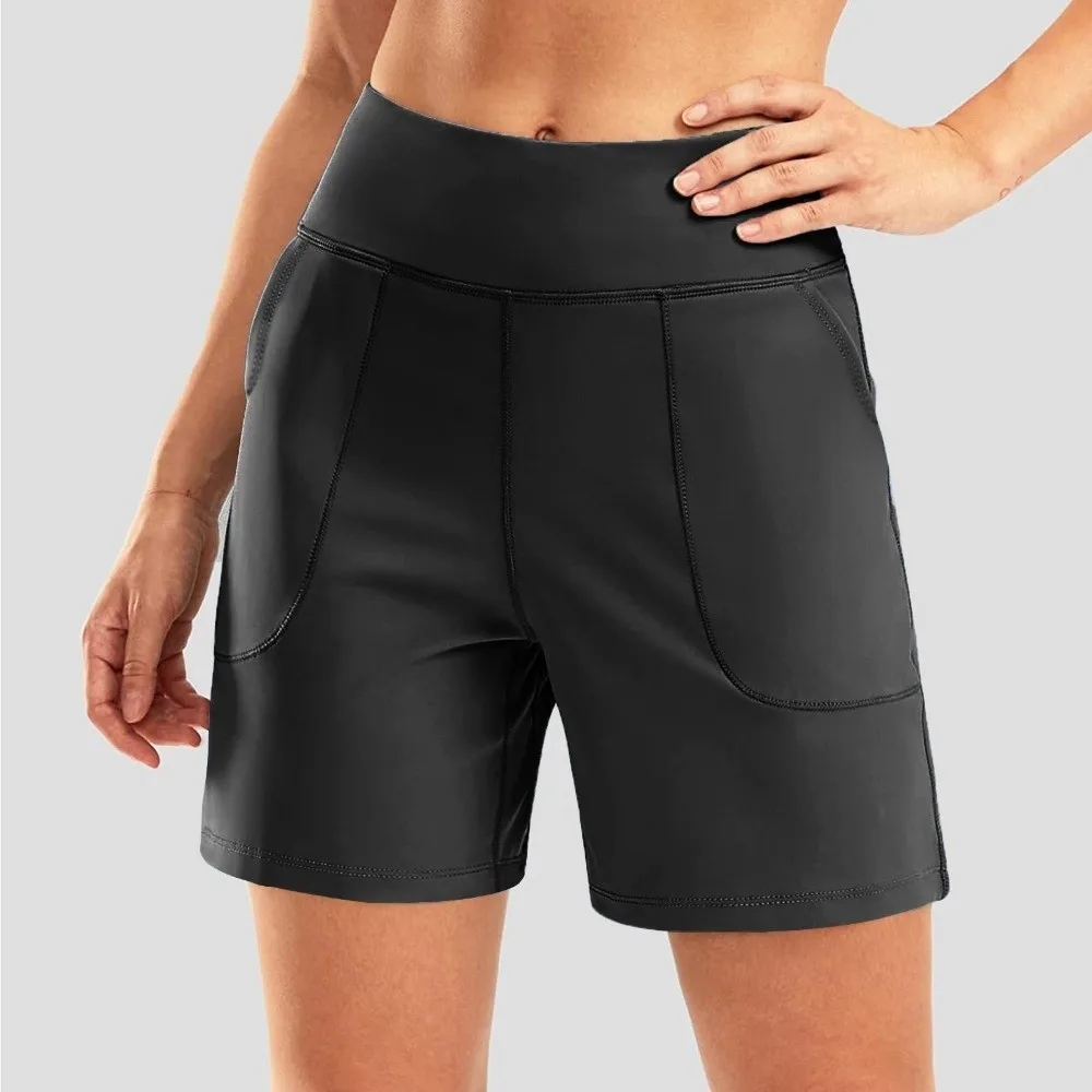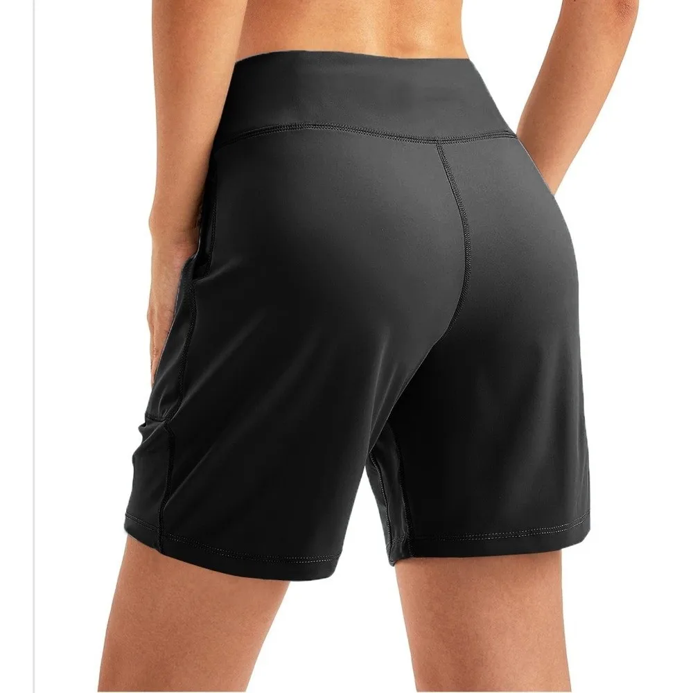 Active Wear Elastic Waist Women Running Shorts High Waist with Pockets Sport Shorts Breathable Comfortable Yoga Pants Workout